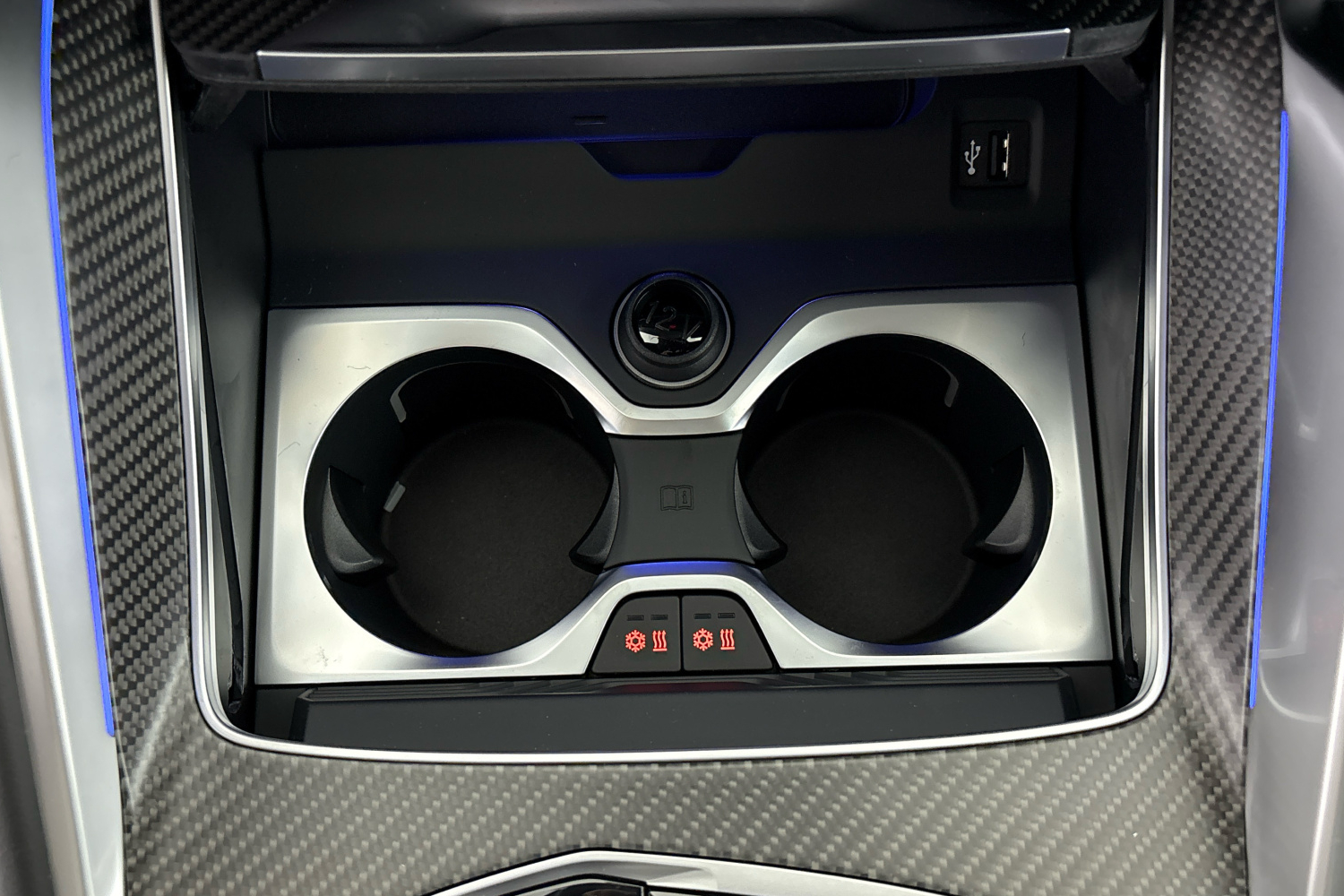Držáky nápojů s ovládáním teploty ve středové konzole lze odděleně vyhřívat nebo chladit. Požadované chlazení nebo vyhřívání nápojů se aktivuje pomocí jednotlivých tlačítek na levé a pravé straně držáku nápojů. Barevné prostorové osvětlení uvnitř držáku také naznačuje, zda se nápoje zahřívají (červená) nebo chladí (modrá barva). Díky tomu mají nápoje při jízdě vždy požadovanou teplotu.