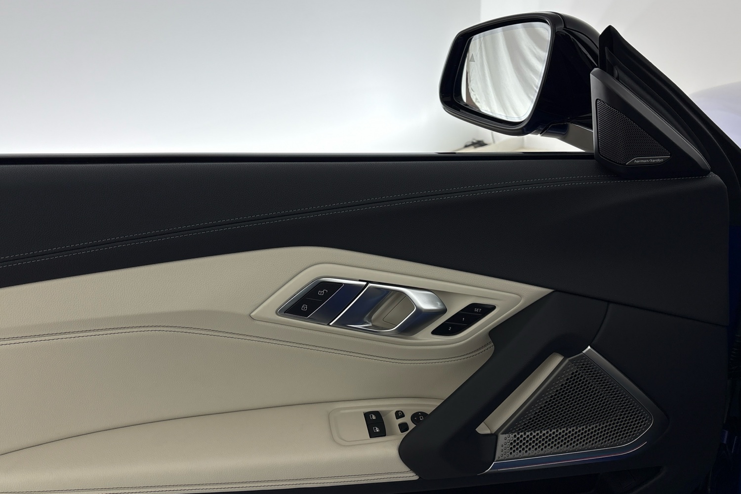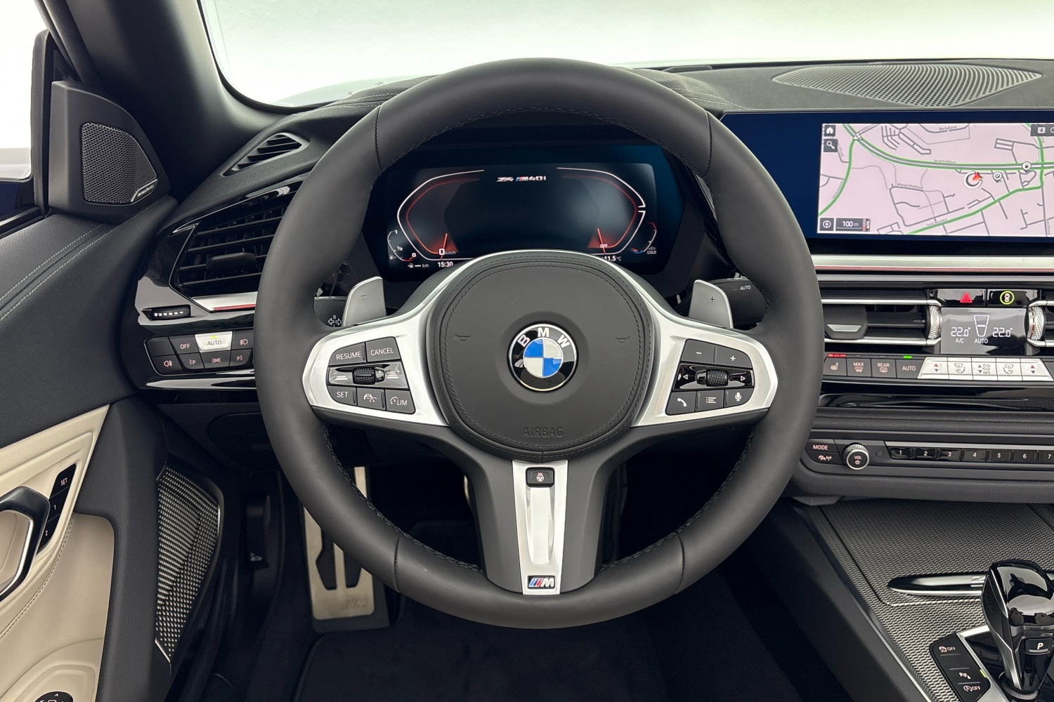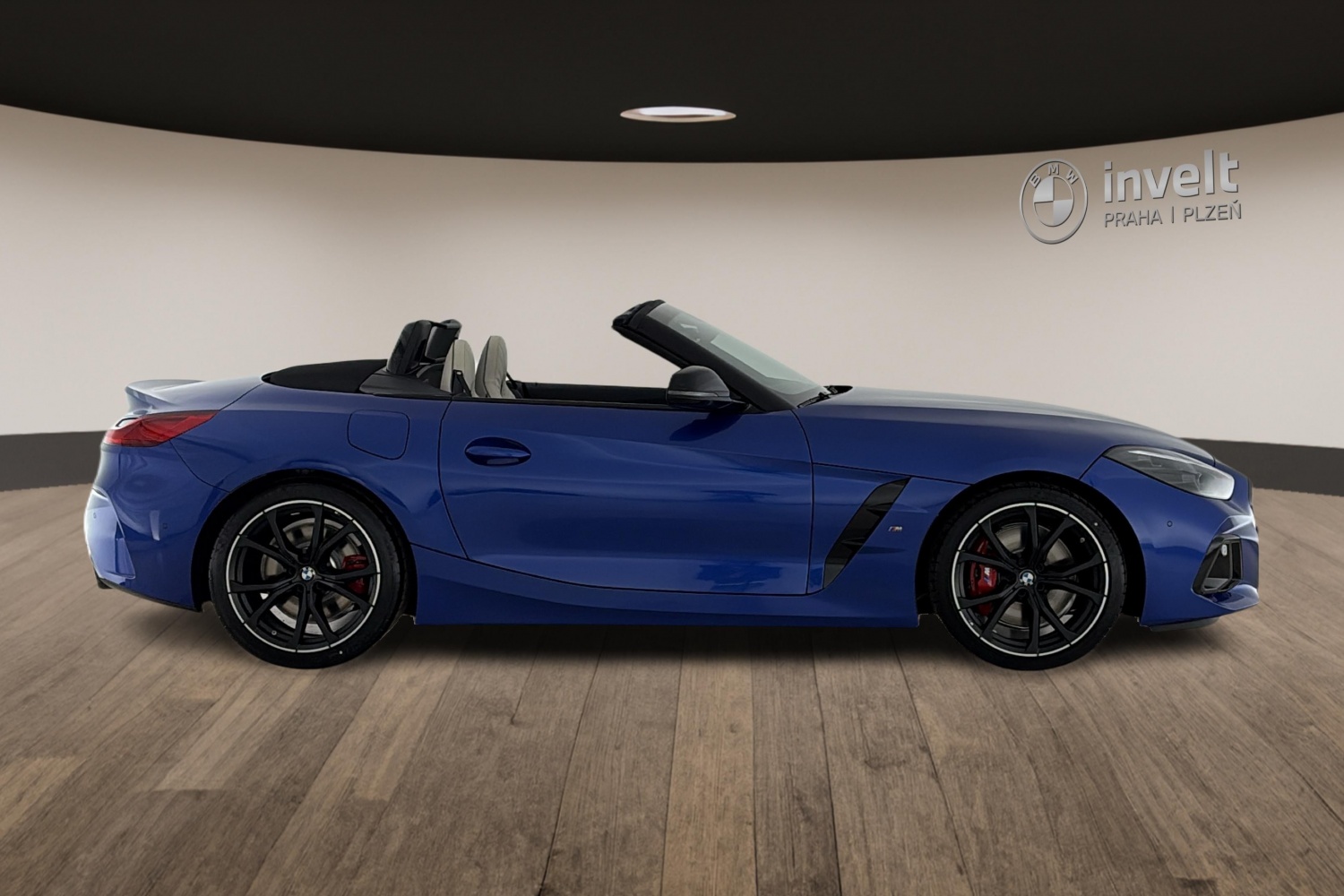 BMW Z4 M40i oblíbené cabrio od BMW. Když je počasí a konečně stáhnete střechu, pak už není nic, co by bránilo zažít radost z jízdy. Je otevřené, sportovní a nekompromisní. Benzínvý motor s výkonem 250/340 kW/HP-KW-HP kW/HP a objemem motoru 2 998 ccm3 vám dodá dostatek rychlosti a dynamiky, aby jste si užili každou zatáčku na silnici. Svobodu mezi silnicí a nebem nad hlavou podtrhne Metalický lak M Portimao Blue (modrá) a krásný interiér Kůže Vernasca Ivory White/Black.