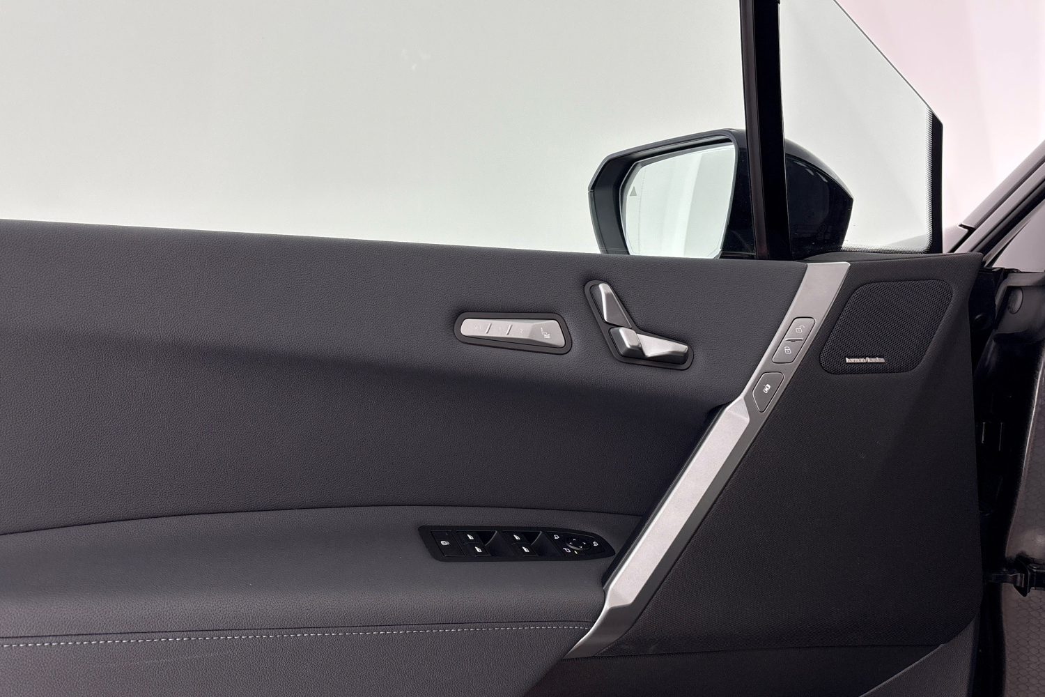 Reproduktory prvotřídní kvality se vyznačují šestihrannou perforovanou deskou v tmavém provedení Titan. Centrální výškový a středový reproduktor jsou umístěny uprostřed přístrojové desky. Dva výškové reproduktory v úchytech zpětných zrcátek a dva středové reproduktory v panelech předních dveří jsou označeny logem Harman Kardon, stejně jako středové reproduktory v obložení zadních dveří. Dva centrální subwoofery pod předními sedadly zaujmou svým objemem a dva výškové reproduktory a středové reproduktory v čalounění stropu zajišťují vynikající poslech i cestujícím na zadních sedadlech. Zvuk se upravuje pomocí časem prověřeného ergonomického ovladače iDrive a kontrolního displeje.