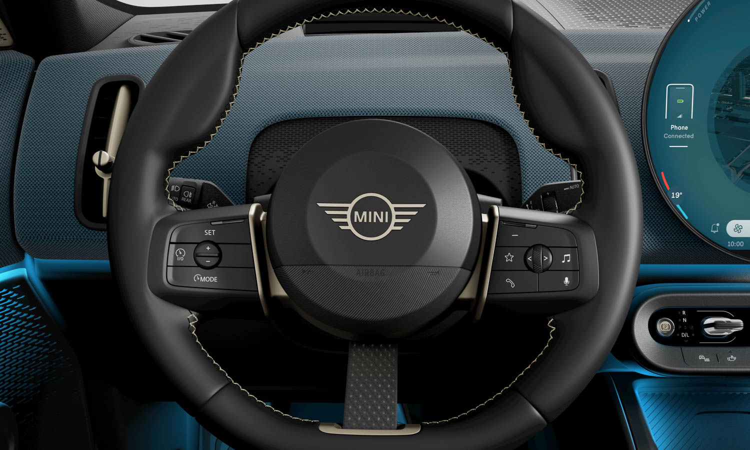 Nově navržený volant s příjemně masivním věncem vám padne do ruky jako ulitý a okamžitě zprostředkuje tu pravou motokárovou DNA, kterou je značka MINI proslulá. I zde vládne čistý a hravý minimalismus, podtržený unikátním třetím ramenem v podobě stylového textilního popruhu. Logicky rozmístěná multifunkční tlačítka pak máte neustále na dosah prstů, což zaručuje bleskové a naprosto intuitivní ovládání všech klíčových funkcí bez nutnosti spouštět oči z vozovky.