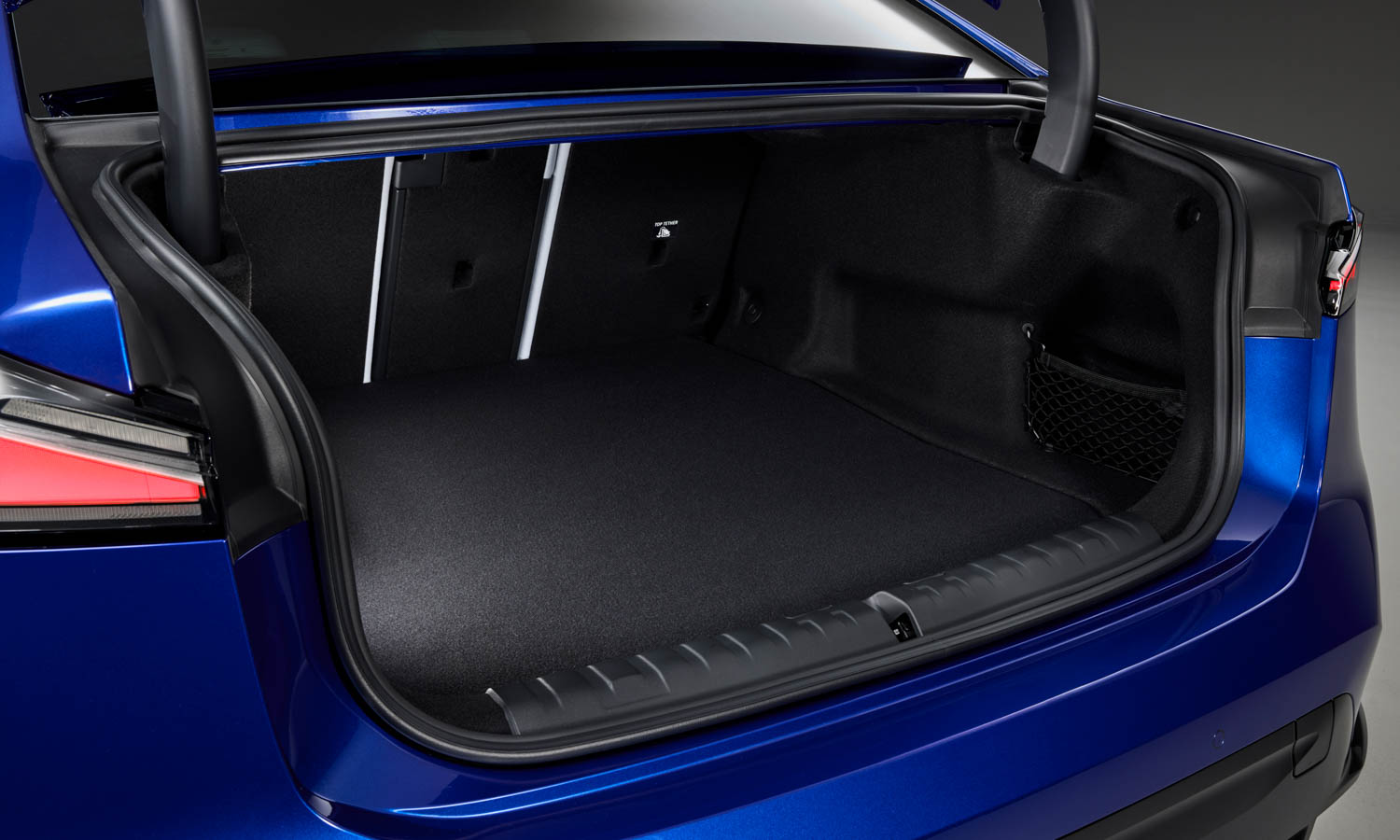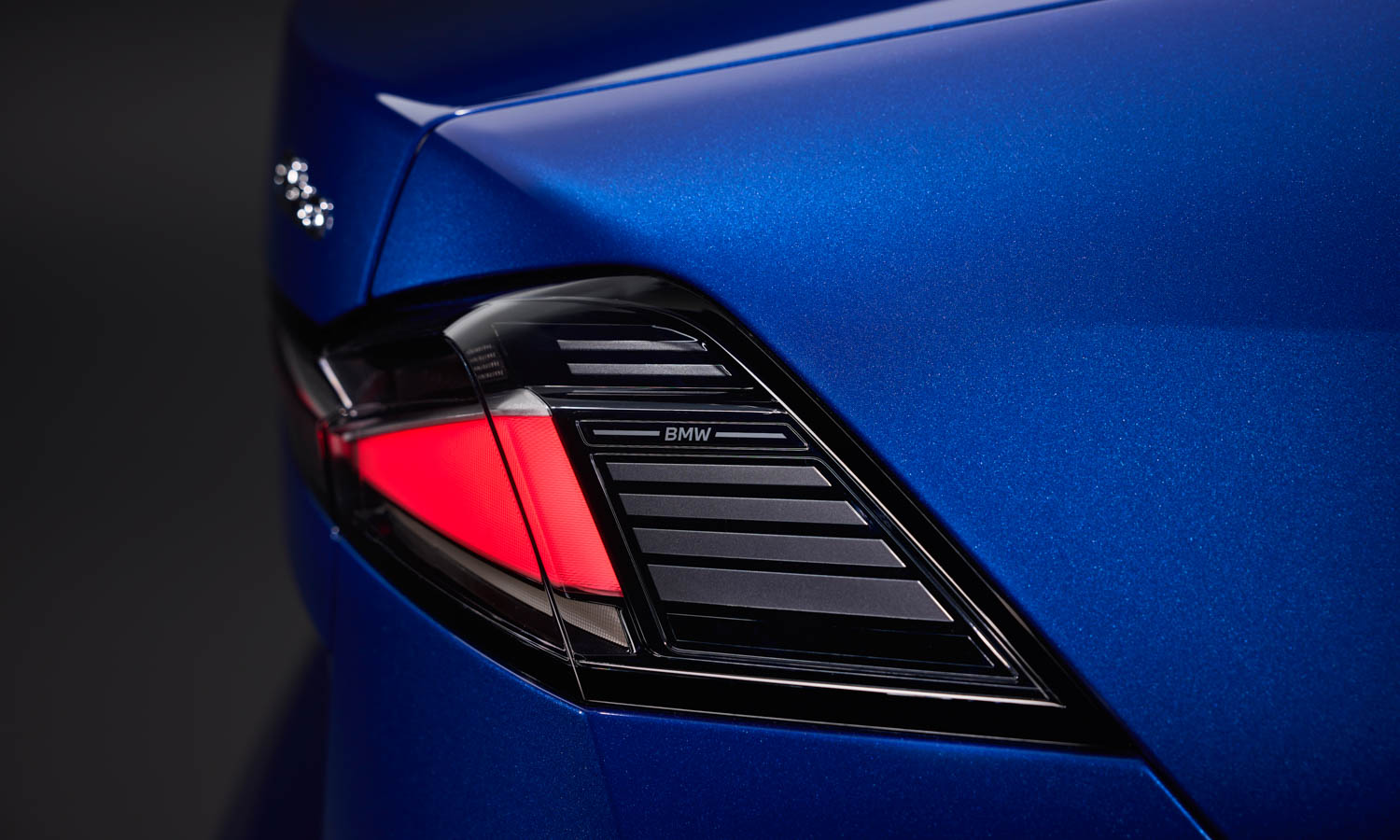Dynamicky tvarovaná záď s mohutnými blatníky a výrazným spodním difuzorem vizuálně podtrhuje celkovou šířku tohoto sedanu prostřednictvím horizontálně uspořádaných zadních světel s trojrozměrným podpisem, jež zcela abstraktním způsobem interpretují známý tvar písmene L.