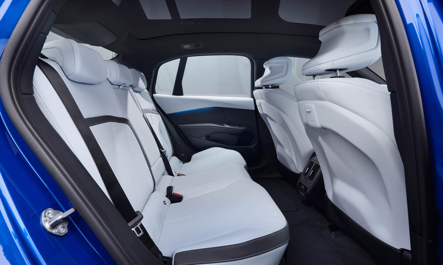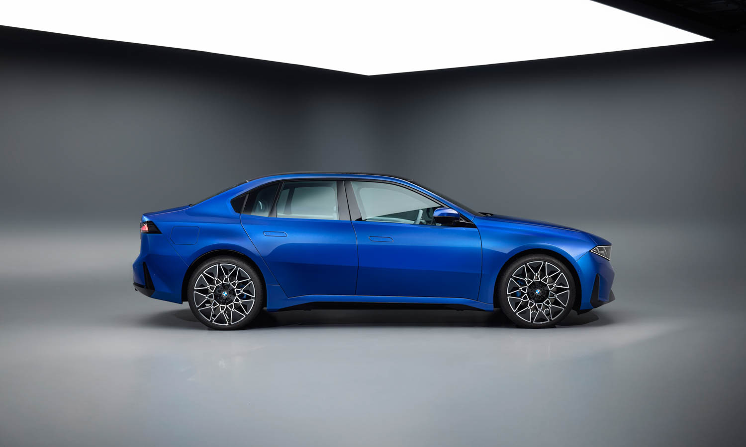 Promyšlená aerodynamika se opírá o zcela hladkou podlahu, zapuštěná dveřní madla i mohutné jednadvacetipalcové ráfky, zatímco nezaměnitelný přední výraz vozu definuje žraločí nos s inovativně propojenou maskou chladiče a specifickými dvojitými světlomety, jež může volitelně oživit světelný paket Iconic Glow. Zadní partii dominují výrazně rozšířené blatníky a horizontálně uspořádaná světla s trojrozměrným podpisem, jež vizuálně podtrhují šířku a technologický posun celého stroje. Tuto puristickou a do budoucna mířící estetiku pak naprosto dokonale završuje exkluzivní modrý metalický lak M Le Castellet Blue, jenž byl navržen speciálně pro tuto modelovou řadu.
