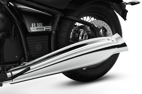 Díky matné metalíze Manhattan vypadá R 18 opravdu působivě. Tento vzhled je ještě umocněn kryty světlometů a koly z frézovaného hliníku v odstínu 2-Tone-Black. Skvělý vzhled zaručuje kvalitní černé jednodílné sedlo Custom a černá, nízká řídítka Apehanger. Sportovní výraz dodává tlumič výfuku Tapered, díky němuž je každá vyjížďka nejen vizuálním, ale i akustickým zážitkem.